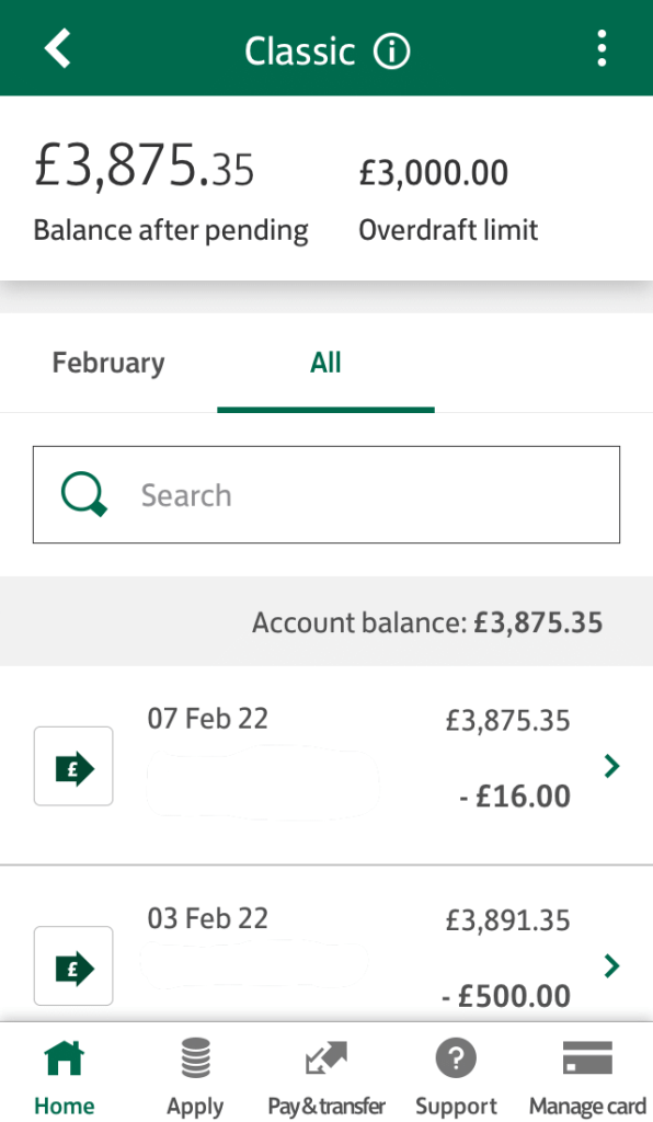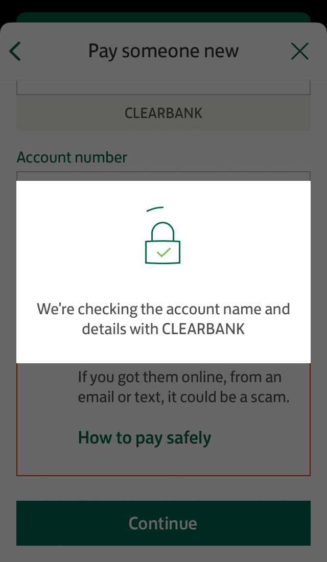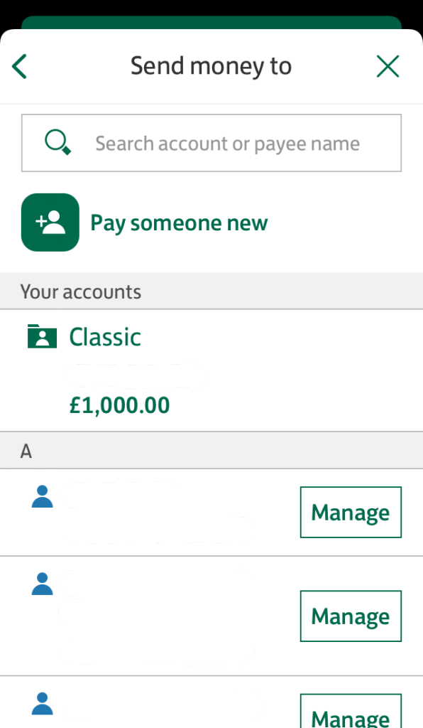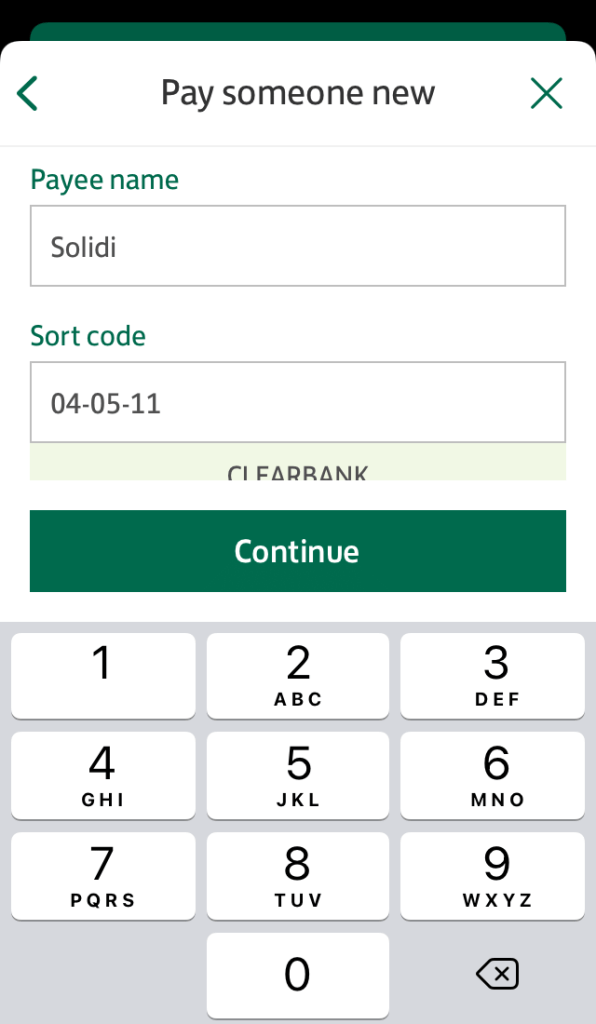5) Enter the account name (Lloyds call this the “payee name”), sort code, and account number.