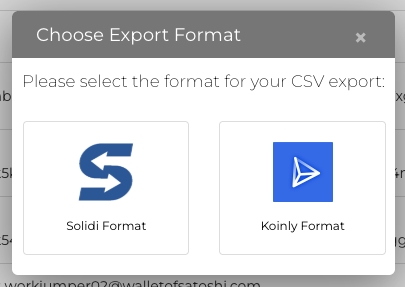 - In the popup, select Koinly Format